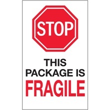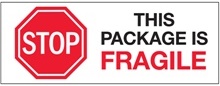 3 x 8" - "Stop - This Package is Fragile" Labels